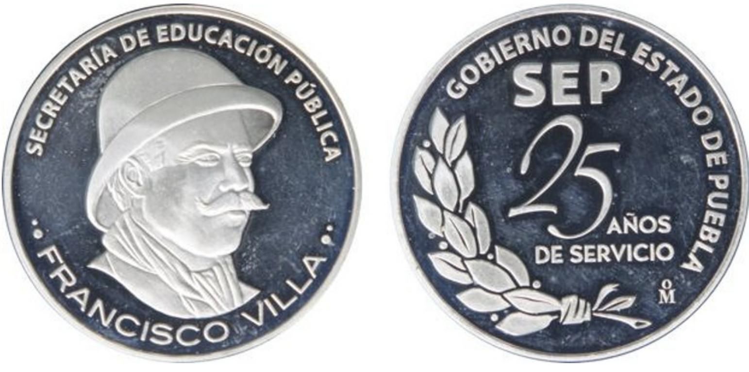 DESCRIPCIÓN ADICIONAL: Francisco Villa, 25 años de servicio, SEP Puebla, atractivo diseño, sin circular, ligeras marcas de humedad, mínimos hairlines